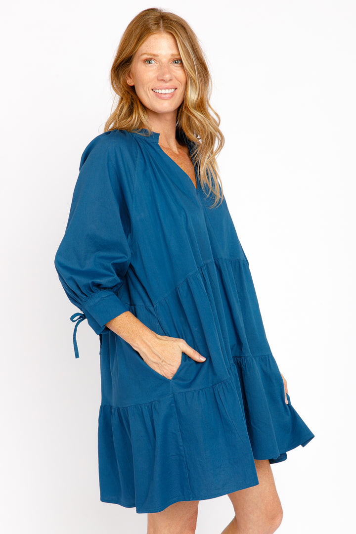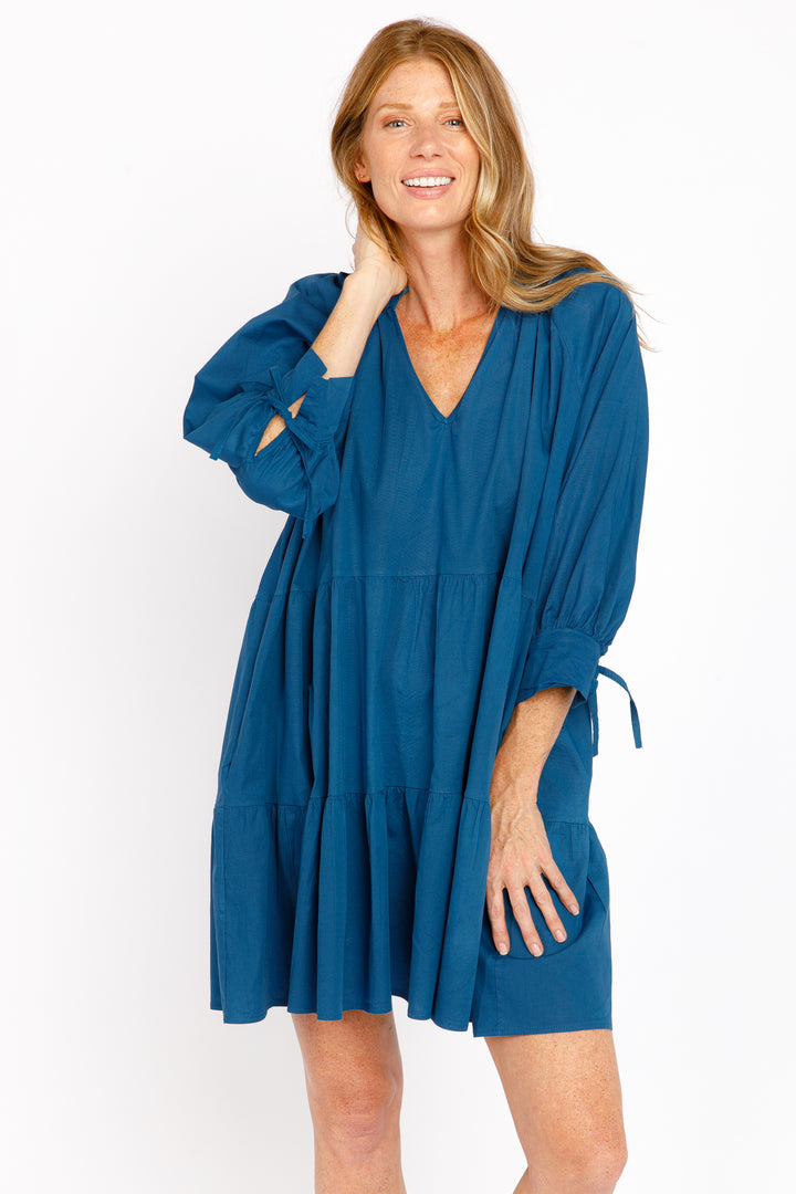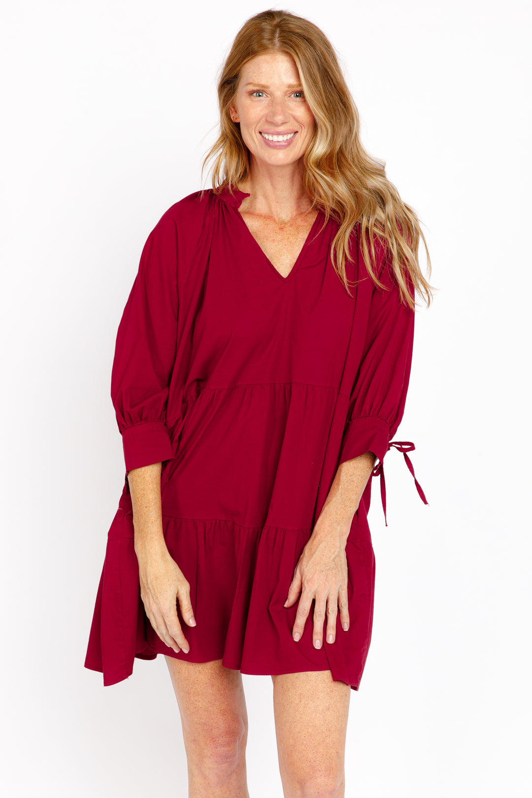 Made of Italian poplin cotton, Eleonor mini dress features a  V-neckline, 3/4   sleeves and a relaxed  fit that fits all body types.