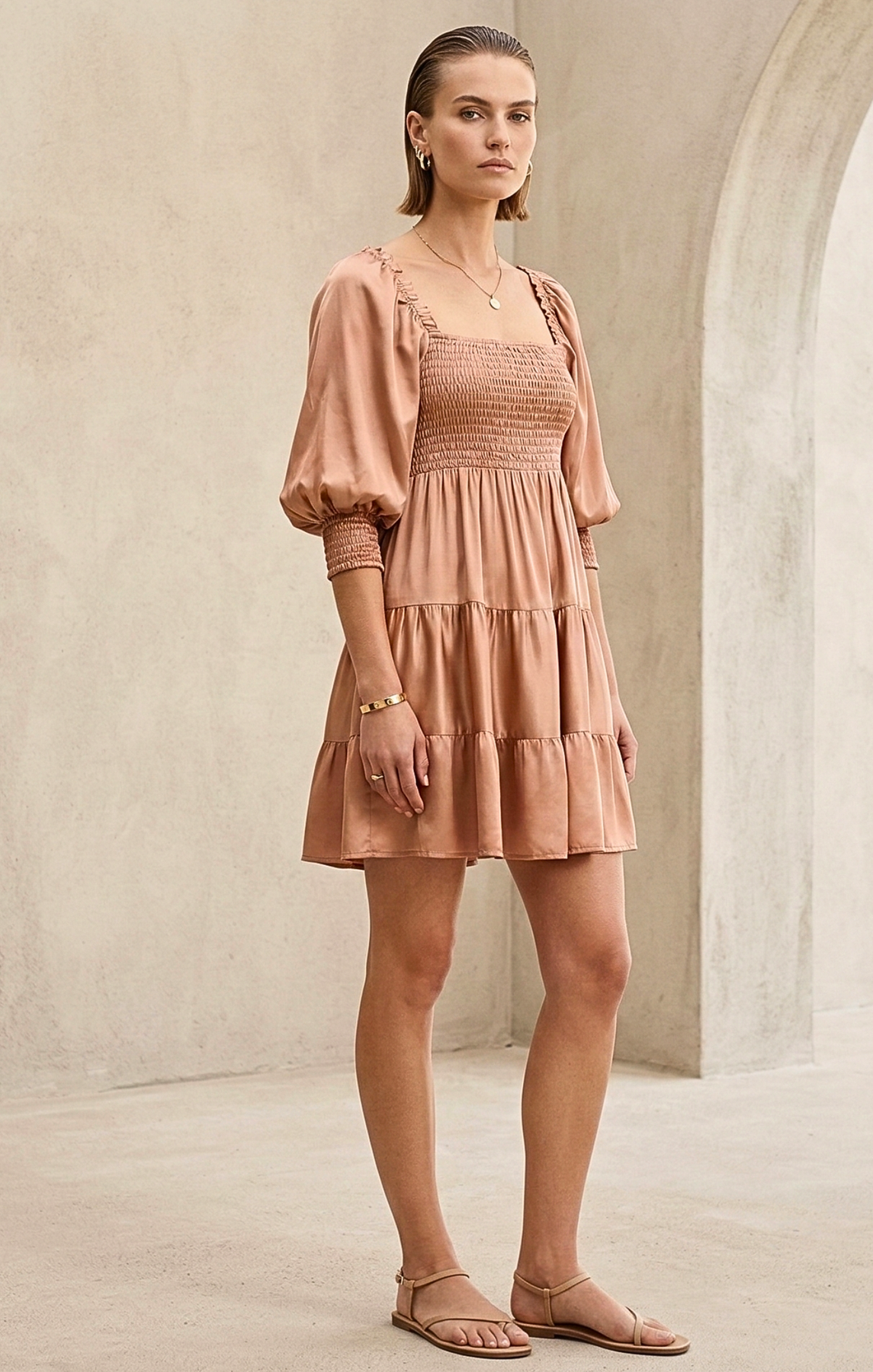 Embrace effortless elegance with our Smocked , Tiered Mini Dress, the perfect blend of vintage charm and modern silhouette. Designed with a flattering square neckline and a stretchy smocked bodice, this dress offers a custom, comfortable fit that moves with you from brunch to golden hour.
