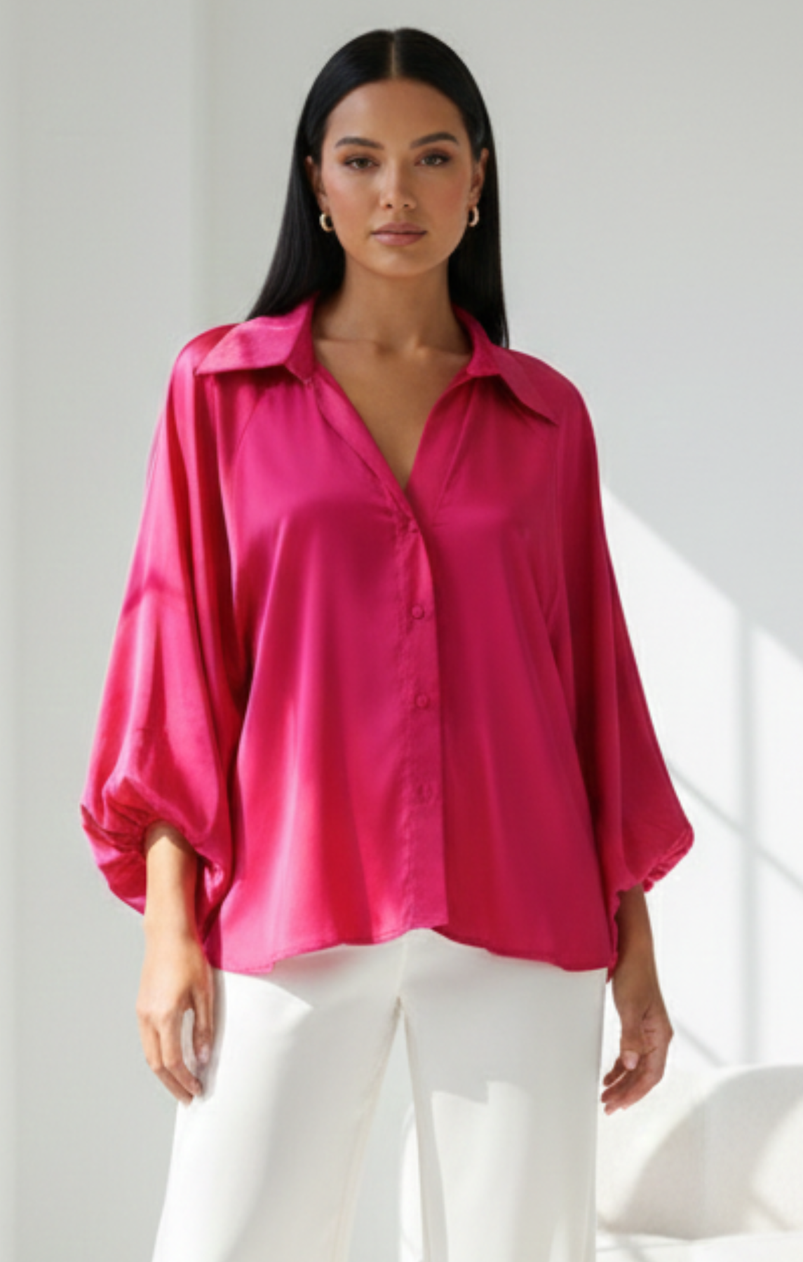 Elevate your everyday style with the luxurious drape of the Montreal Satin Button-Down Top. Crafted from a high-quality, silky smooth satin fabric, this blouse offers an effortlessly chic and comfortable fit. The relaxed, slightly oversized silhouette drapes beautifully, providing a flattering look for all body types.