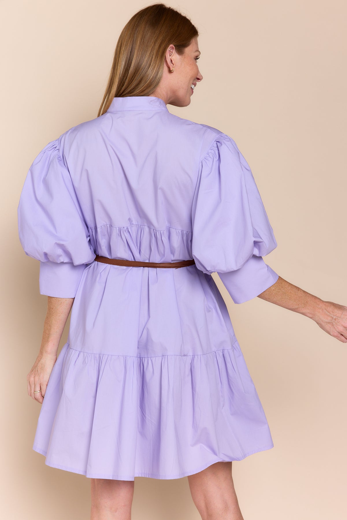 • Style: Modern Mini Shirtdress with a tiered skirt.