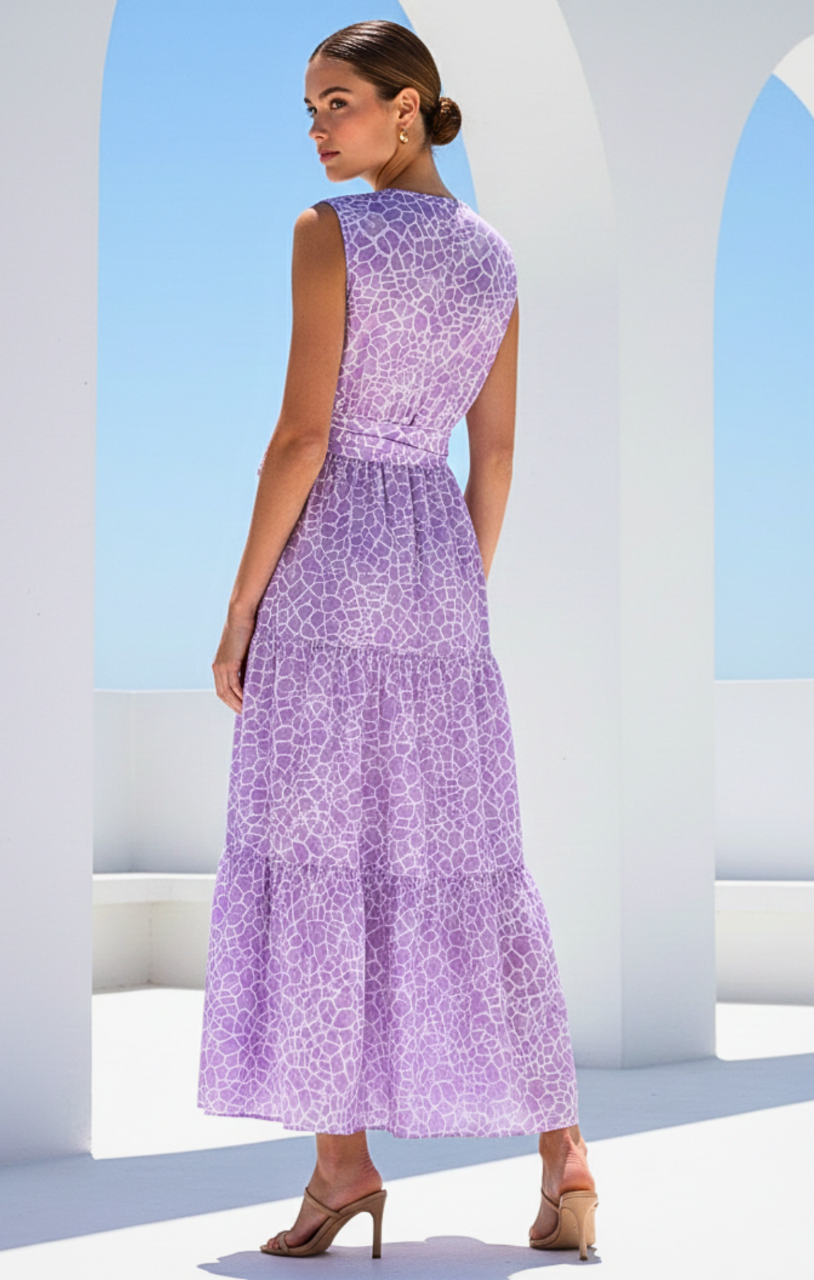 Embrace effortless elegance with our Haven Tiered Maxi Dress. Crafted for the modern woman who loves timeless style, this sleeveless dress features a flattering V-neckline and a cinched waist with an adjustable matching fabric tie to highlight your silhouette.