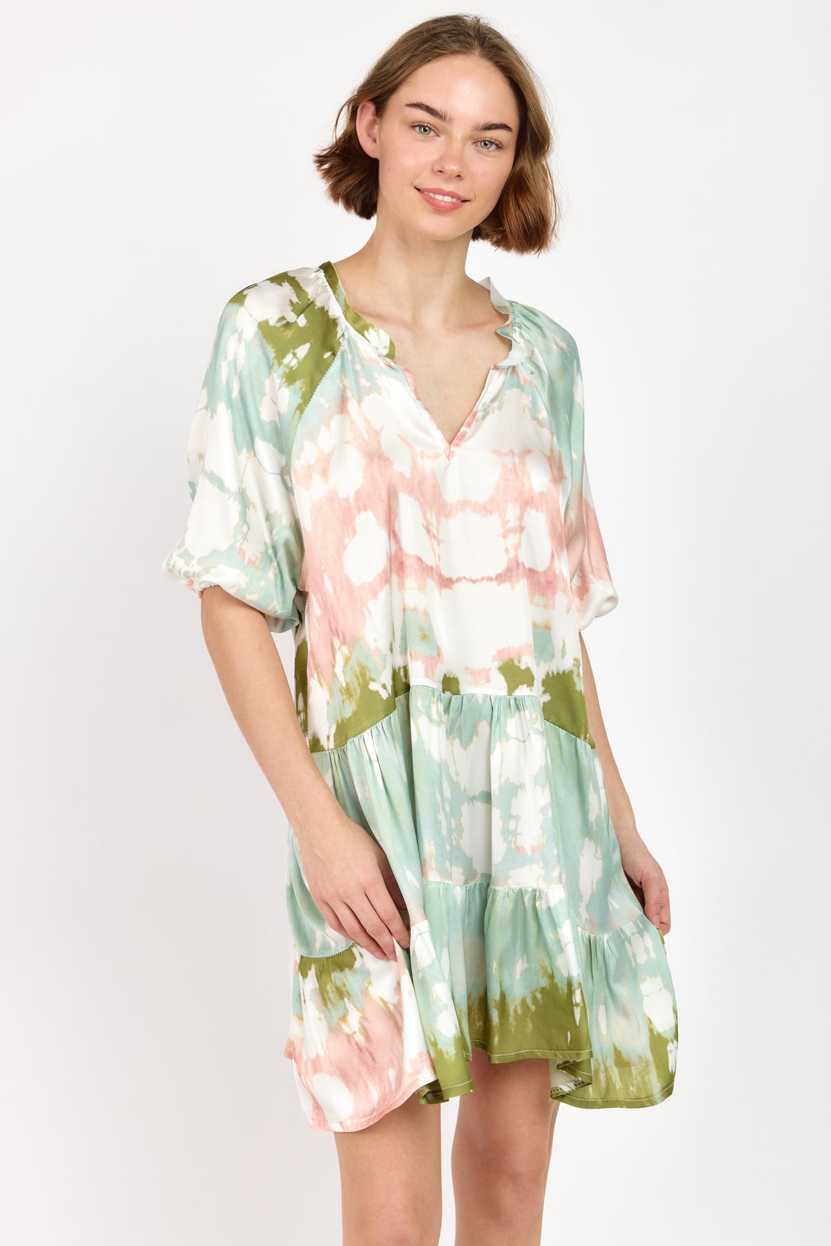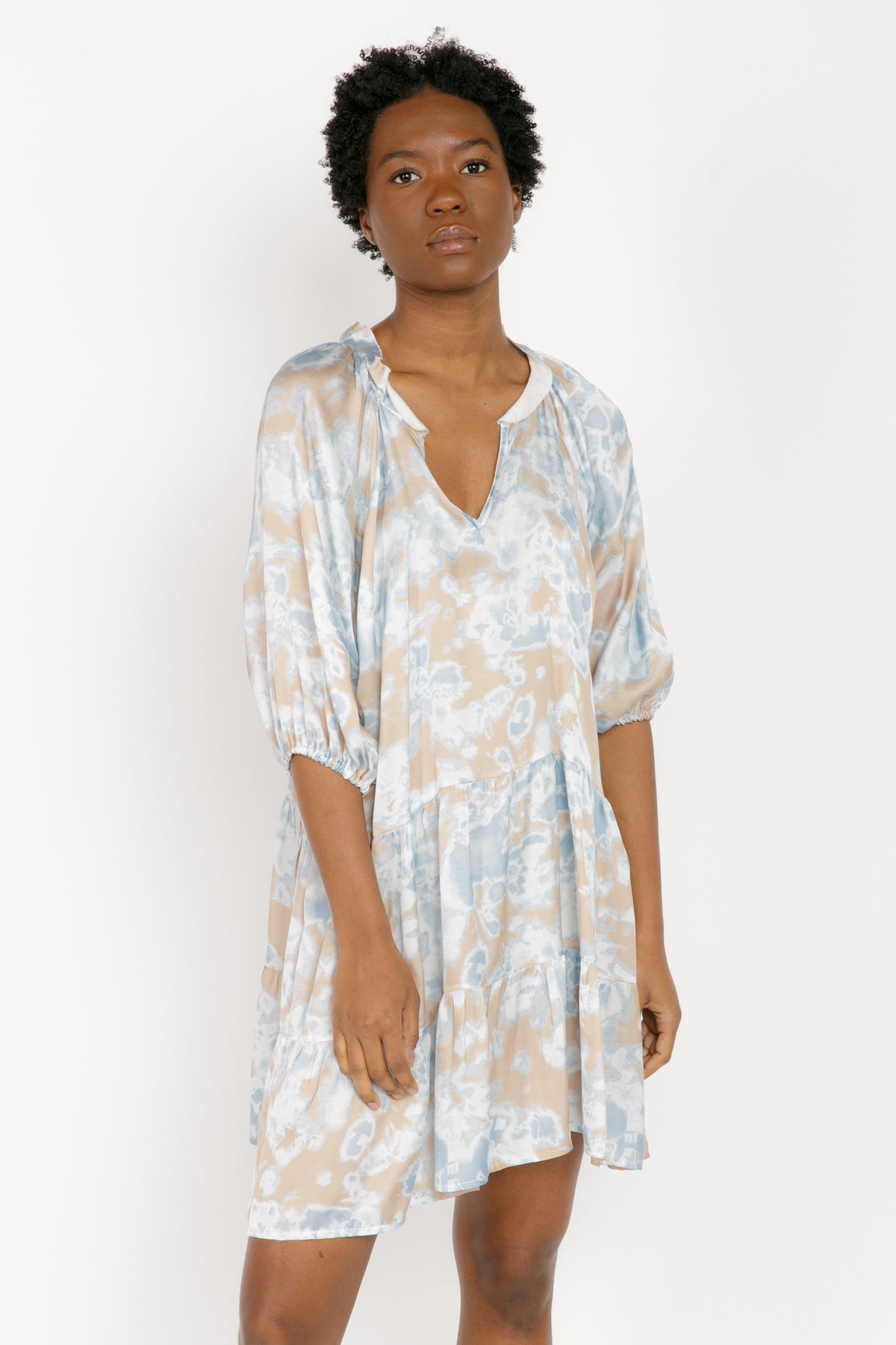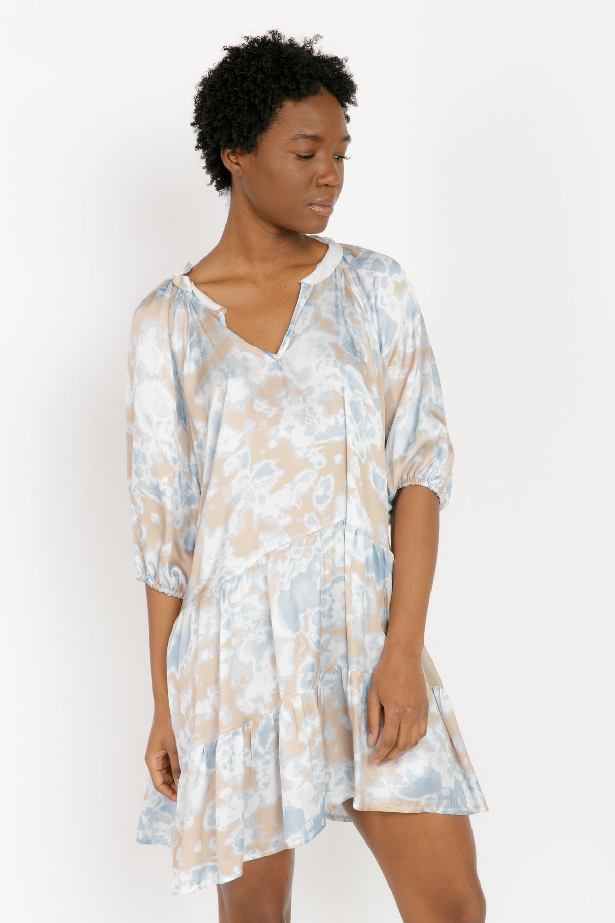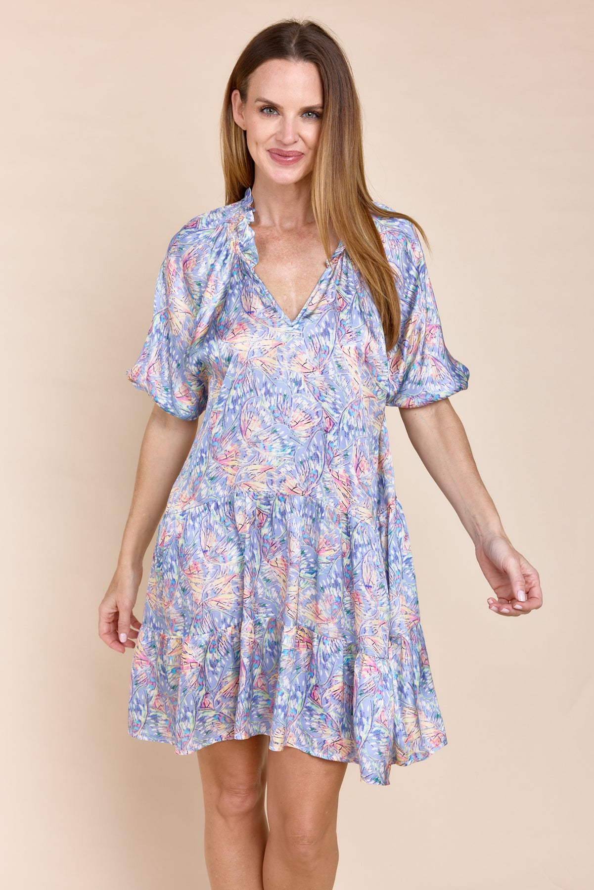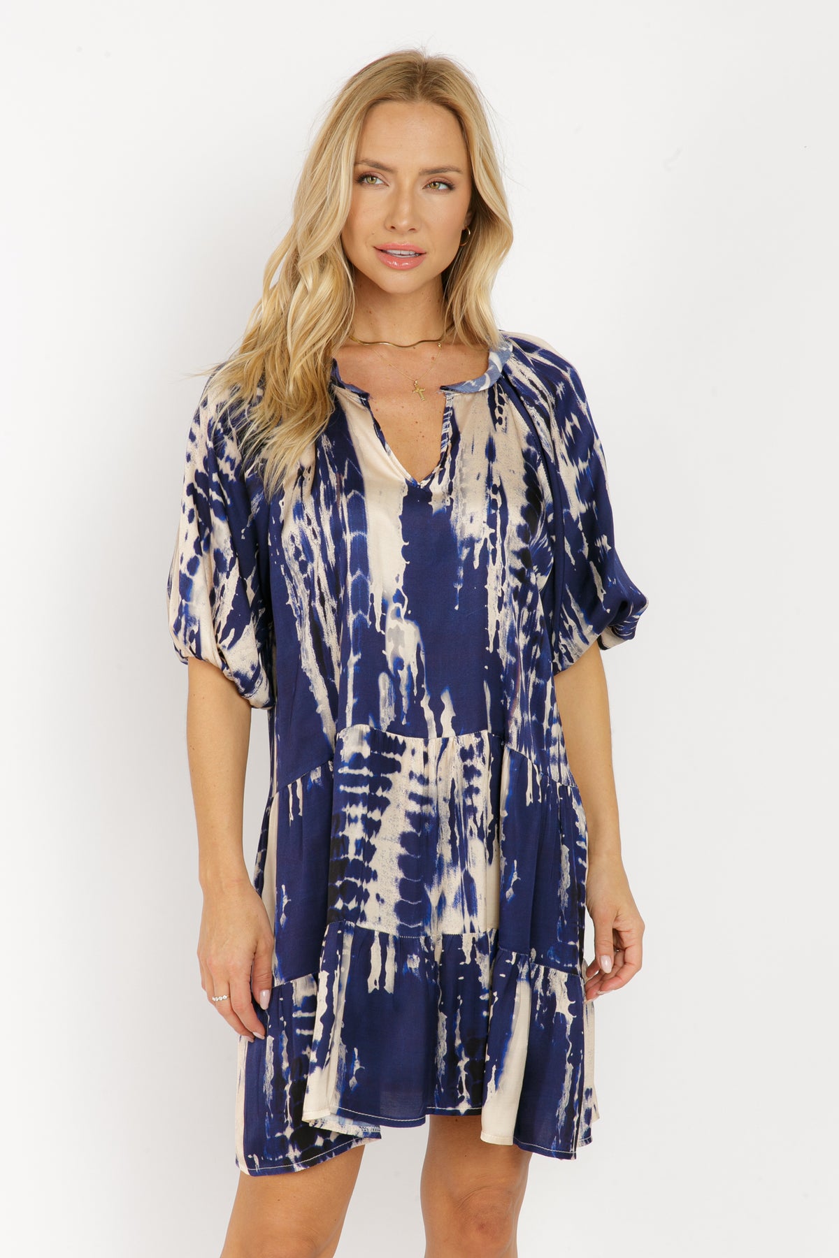 • Style: Relaxed fit Tiered Mini Dress silhouette.