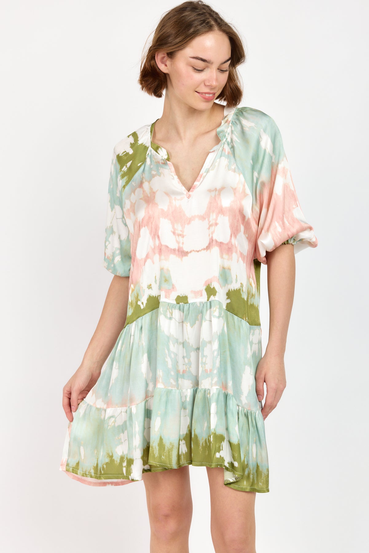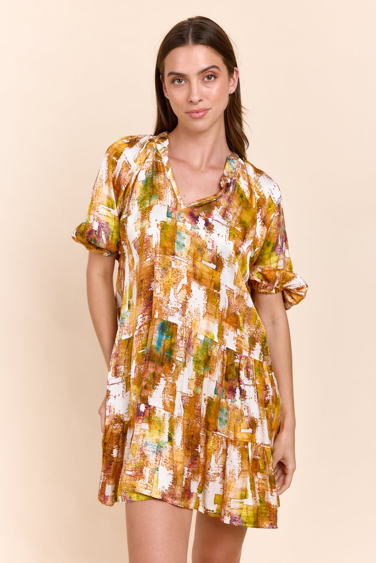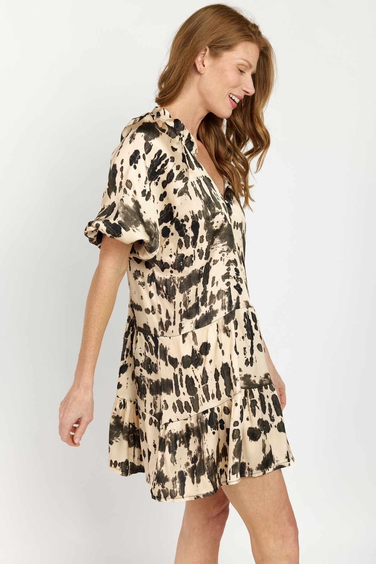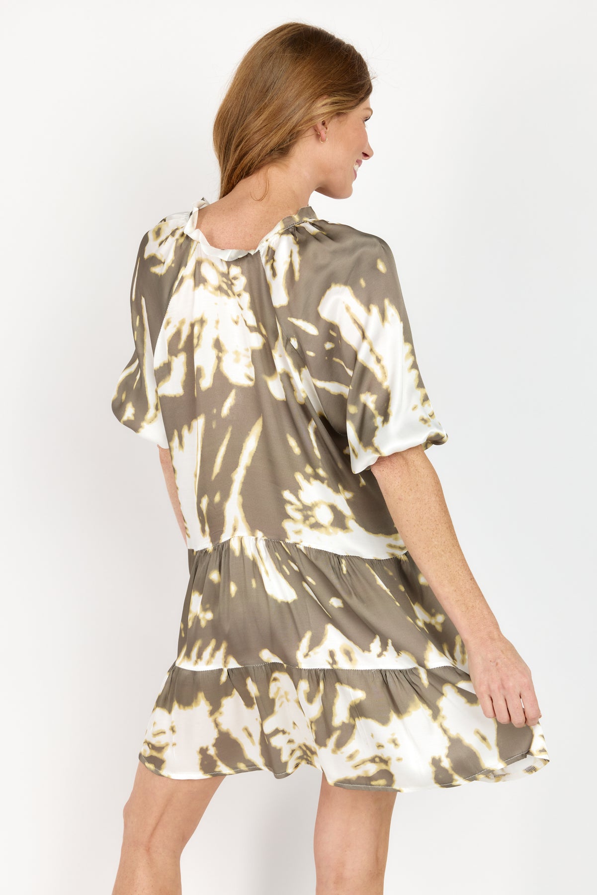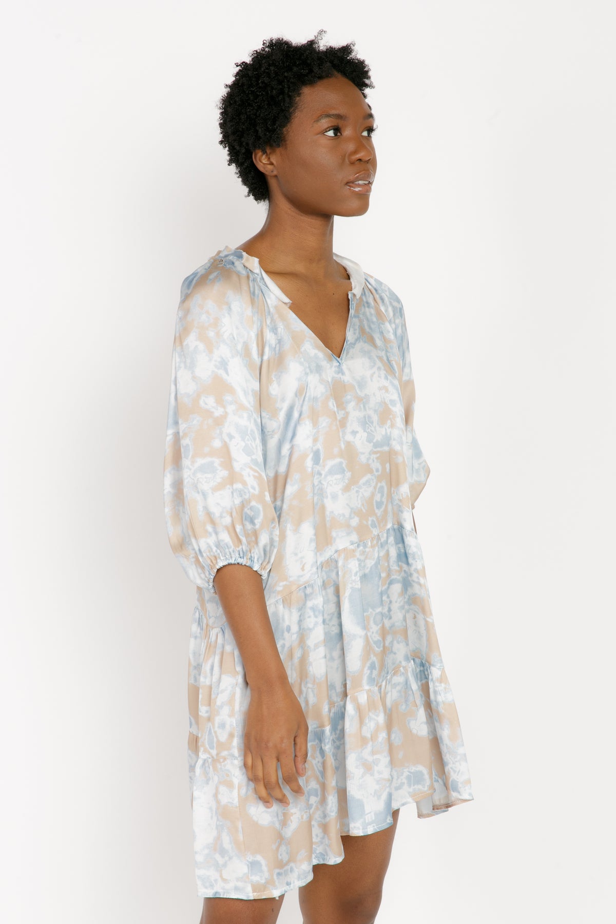 • Style: Relaxed fit Tiered Mini Dress silhouette.
