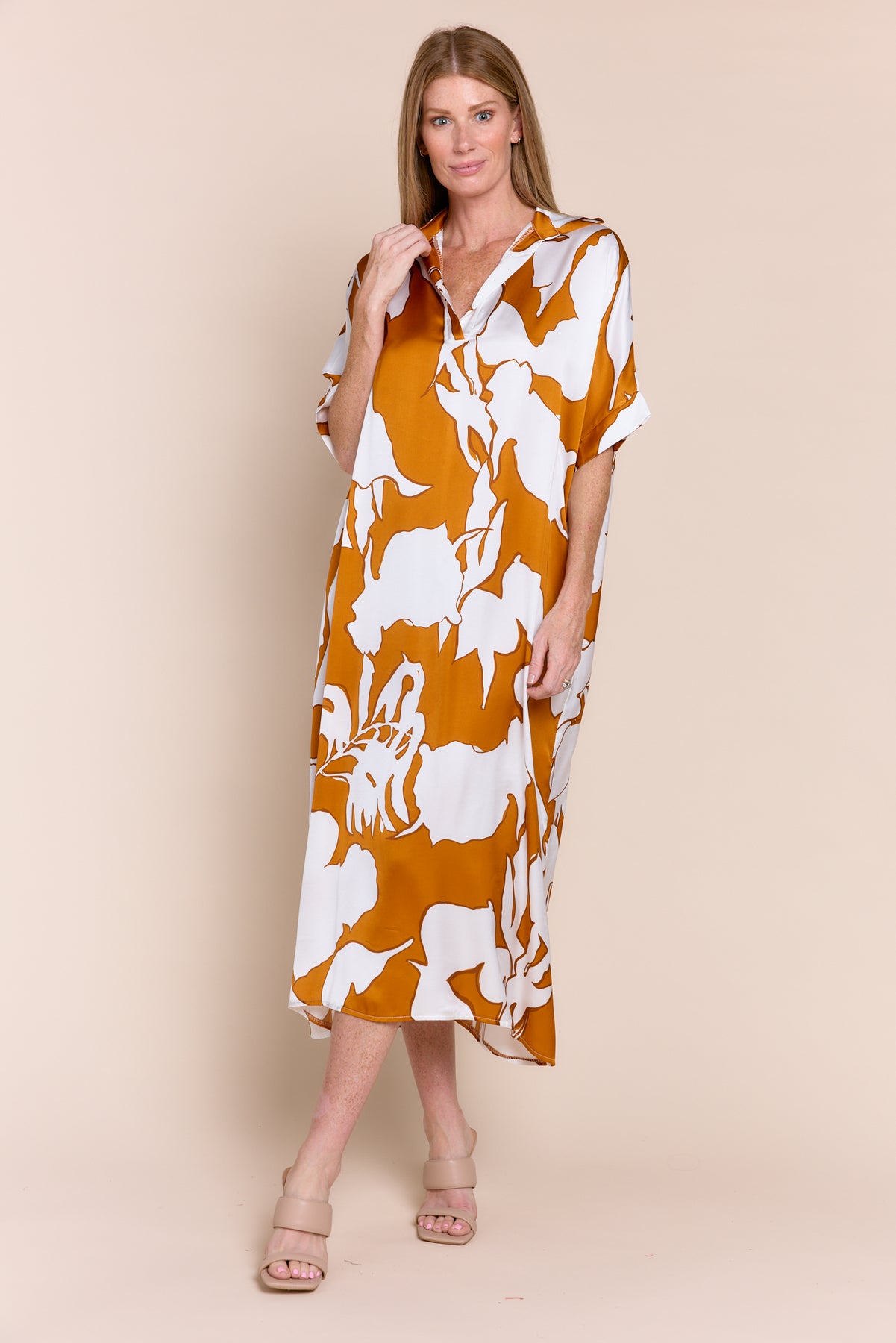 • Design Details: Classic collar, short sleeves, and versatile midi length.