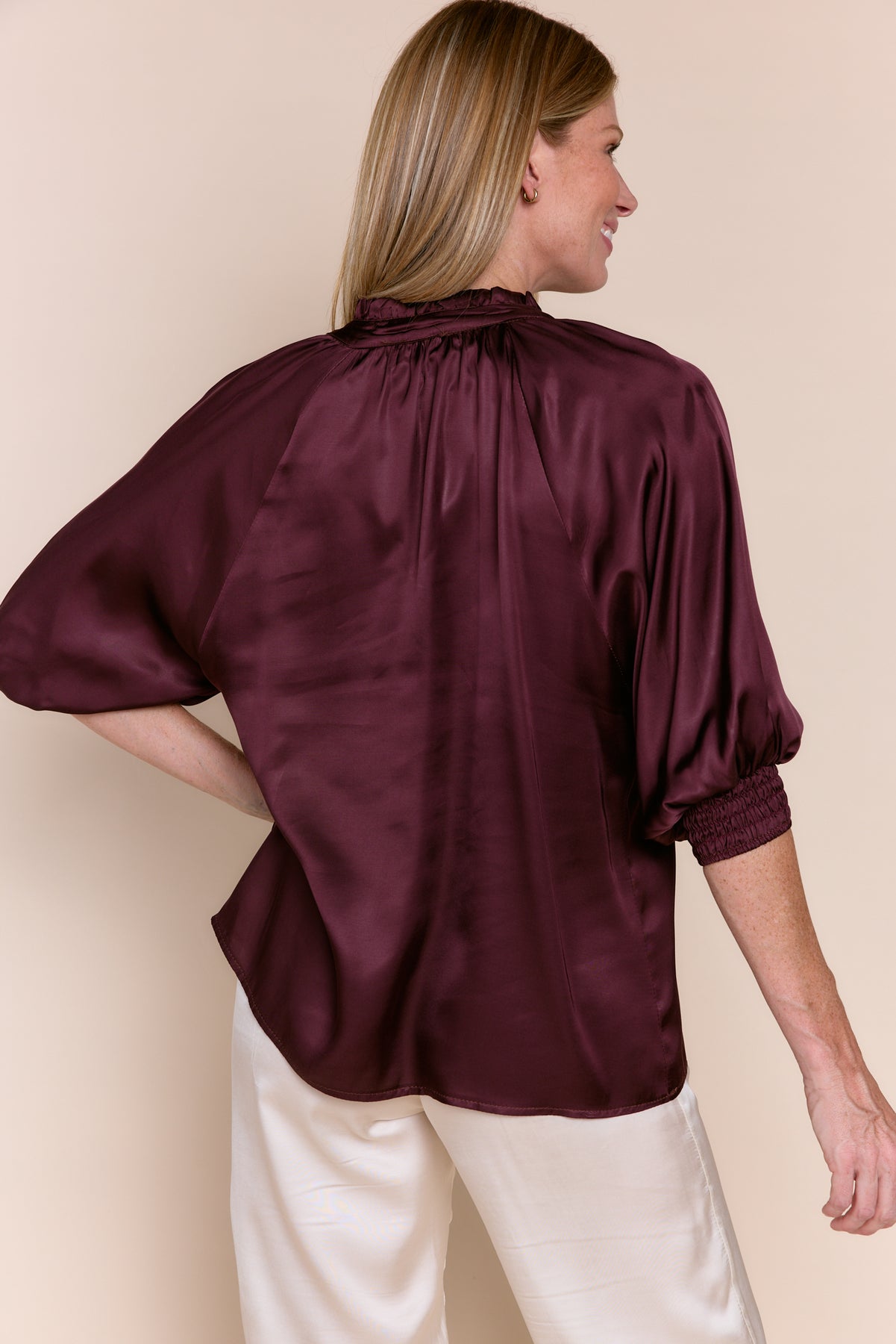 ANDREA | Tops | Blouse, NEW ARRIVALS, Satin, Satin and Silk Tops, SOLIDS, SS24, Tops | shop-sofia