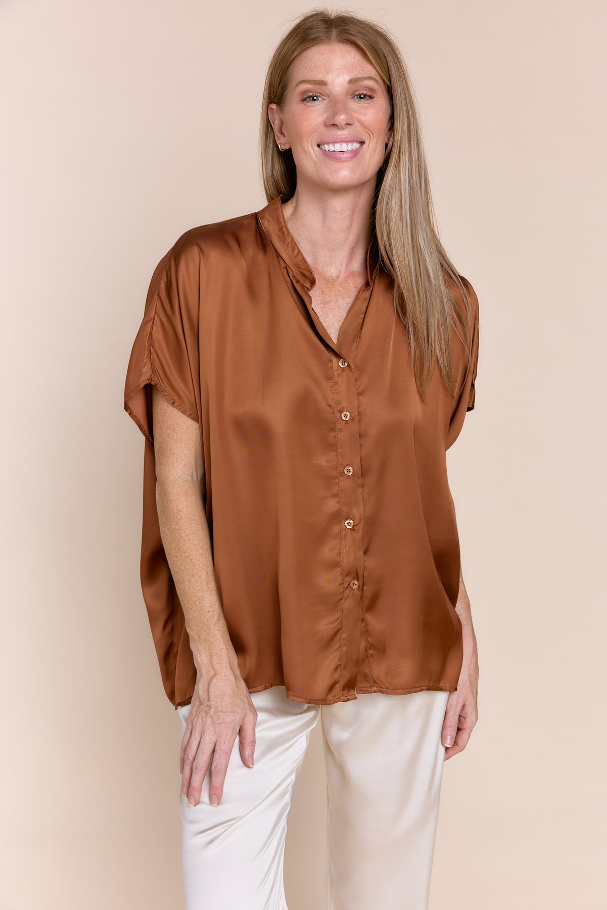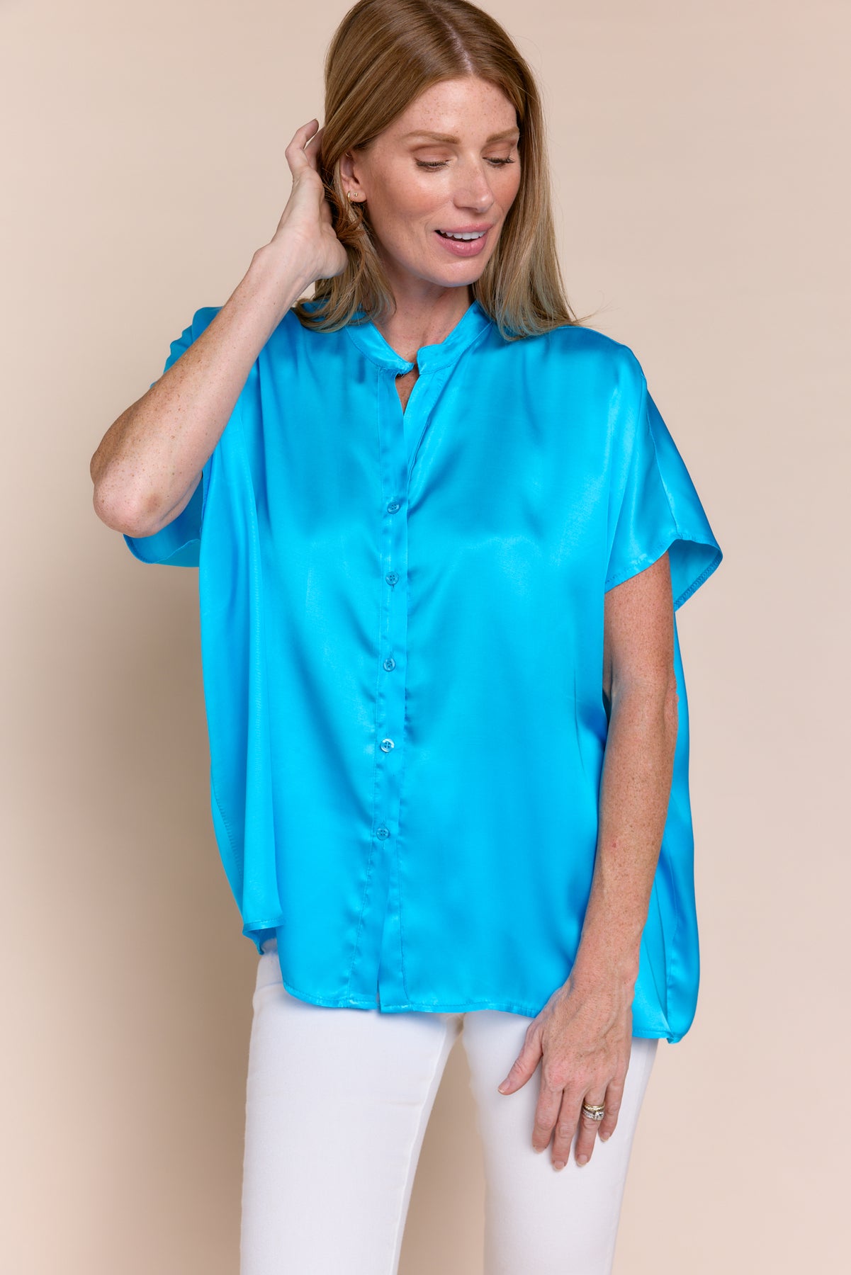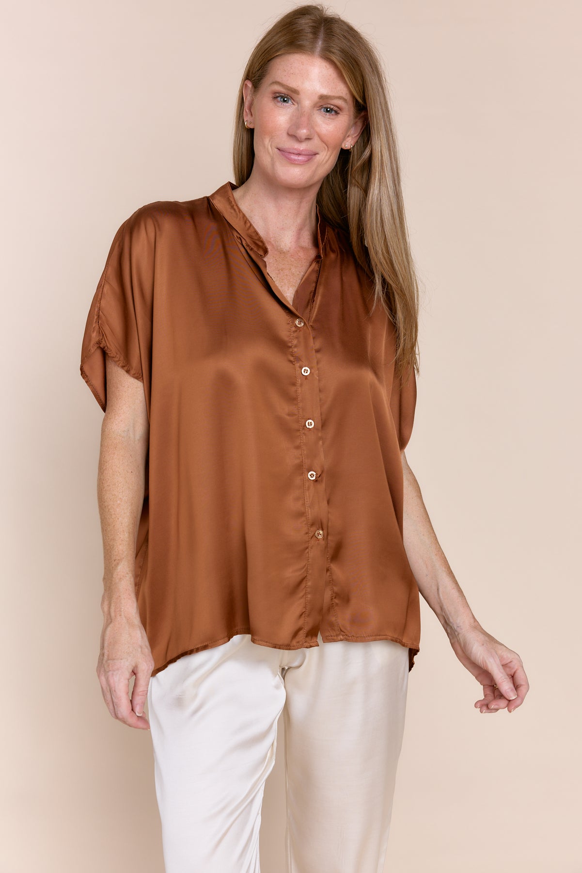 DEBORAH | Top | Blouse, Button Downs, NEW ARRIVALS, Satin, Satin and Silk Tops, SOLIDS, SS24, Tops | shop-sofia