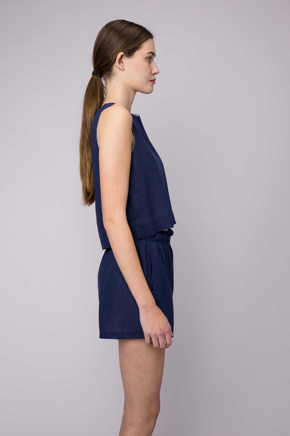 • Style: Boxy, slightly cropped, Sleeveless Top with a refined silhouette.