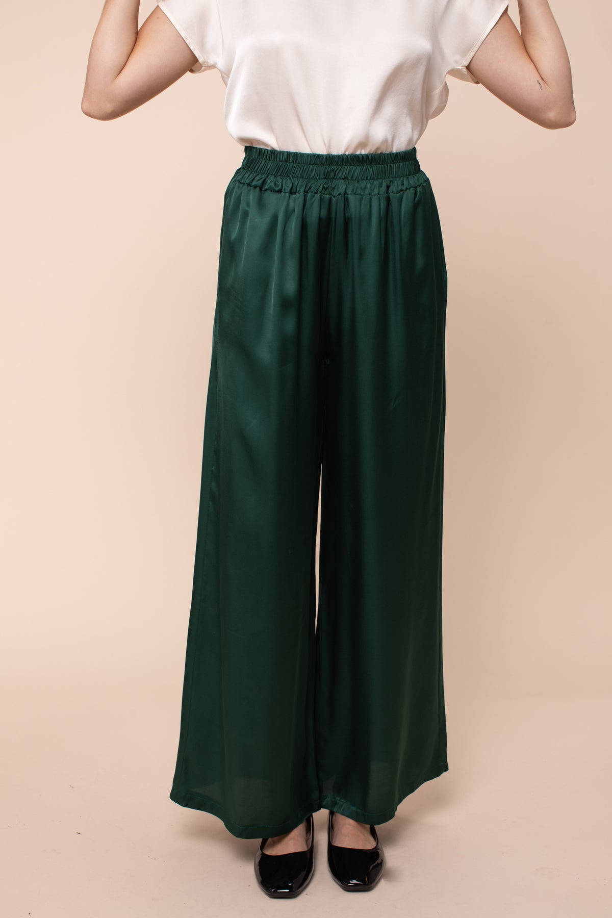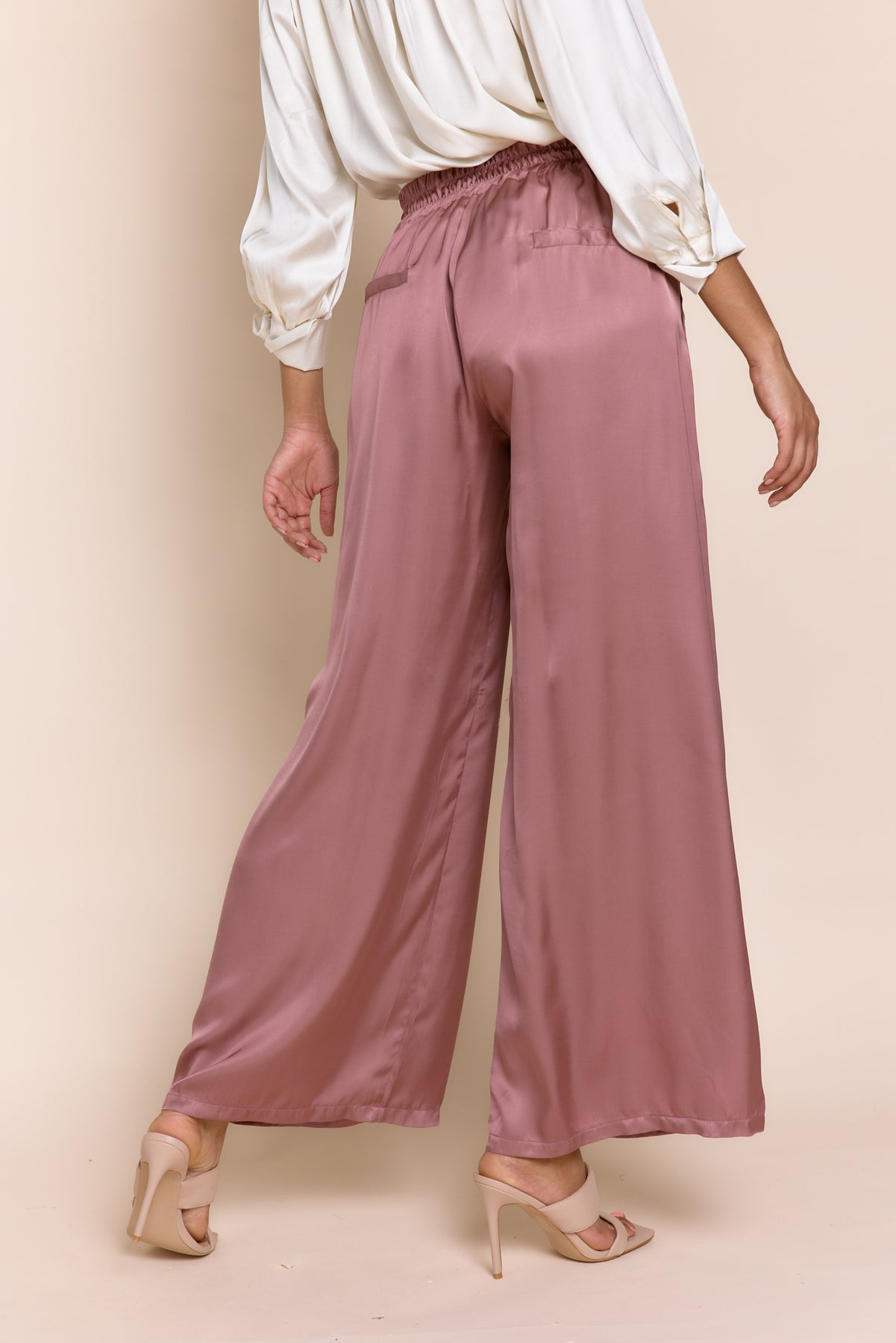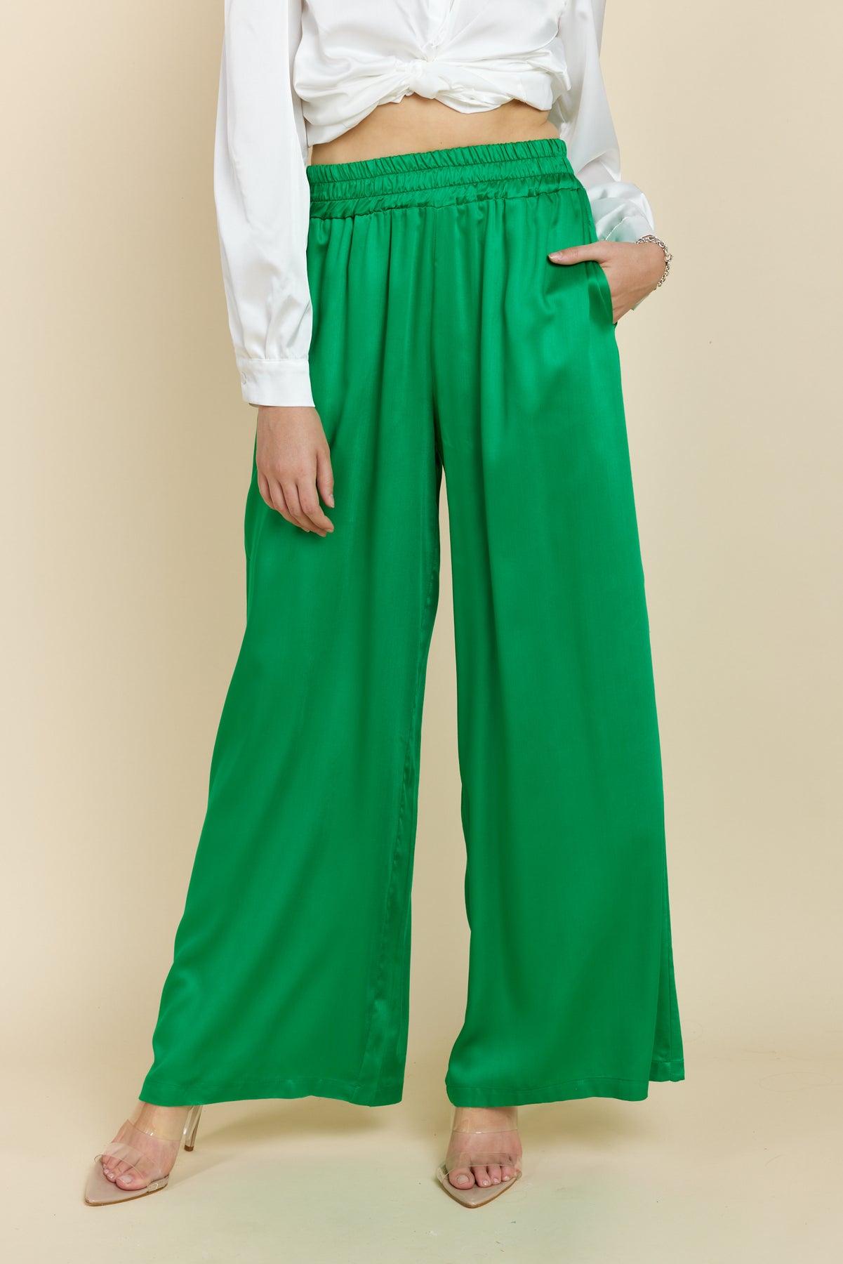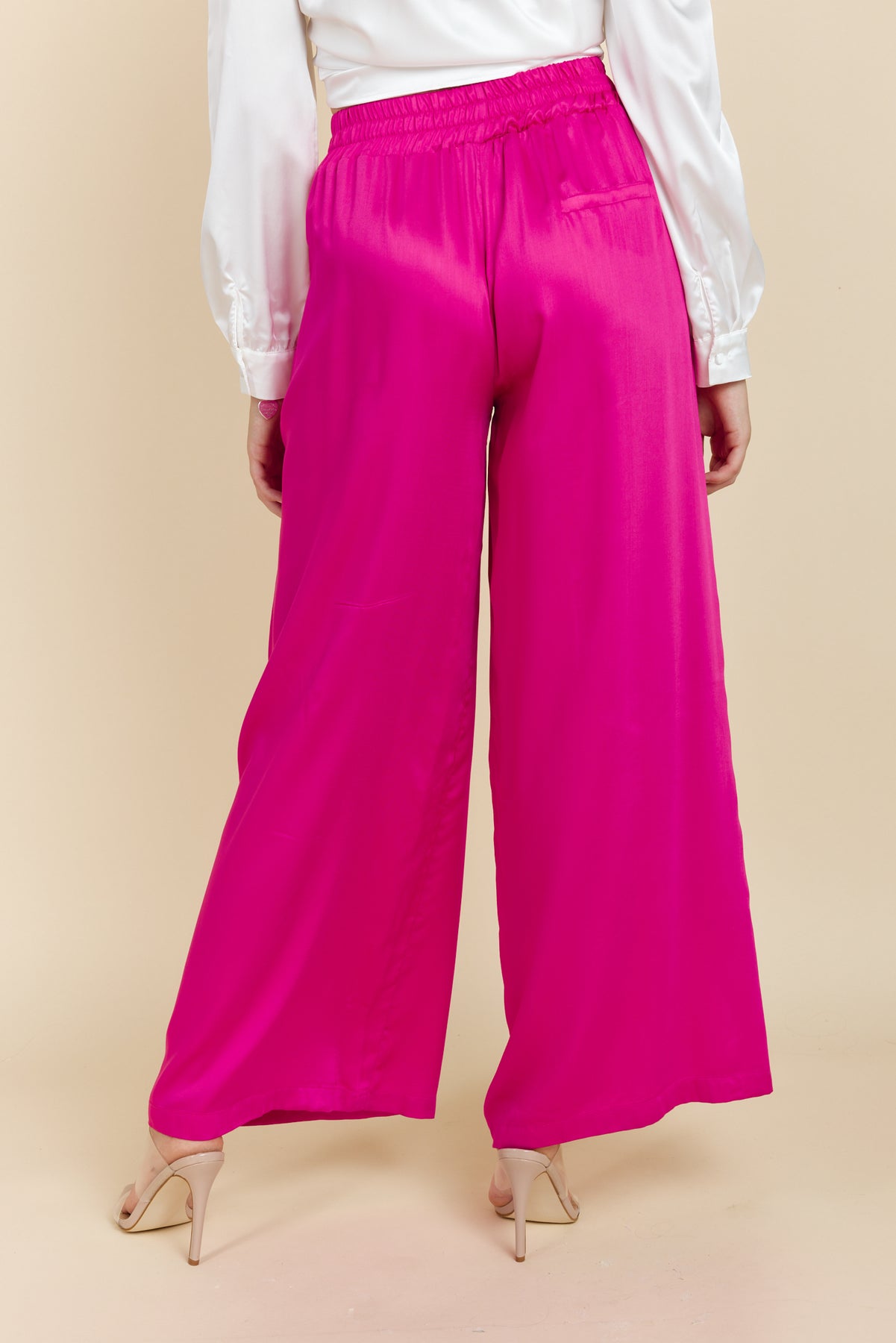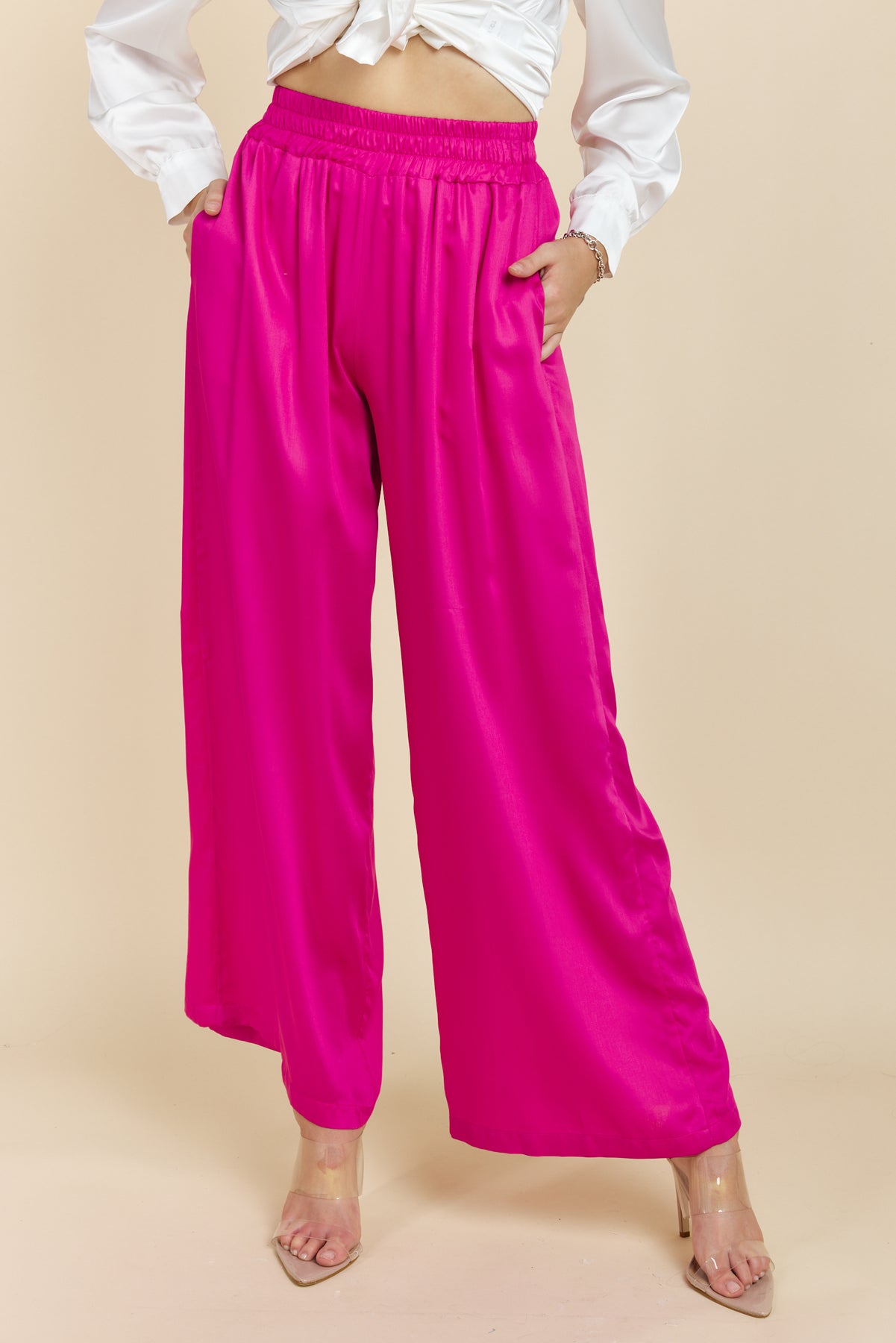 The Amara Pants are the ultimate blend of chic and comfort — designed to elevate your everyday wardrobe. Featuring a flattering elastic high-waisted fit, soft breathable Italian silky satin, and a wide-leg silhouette, these pants move with you from day to night. Whether you're styling them for the office or a weekend brunch, the Amara Pants deliver a polished look with laid-back ease that flatters various. body types