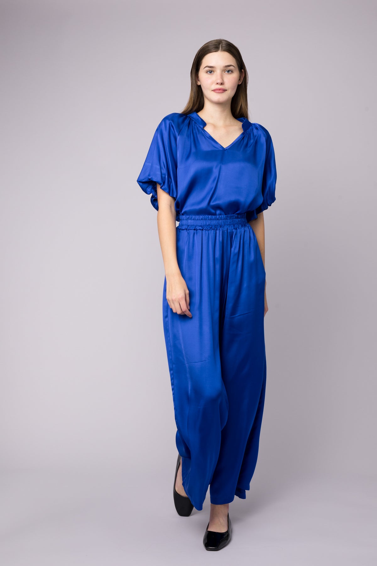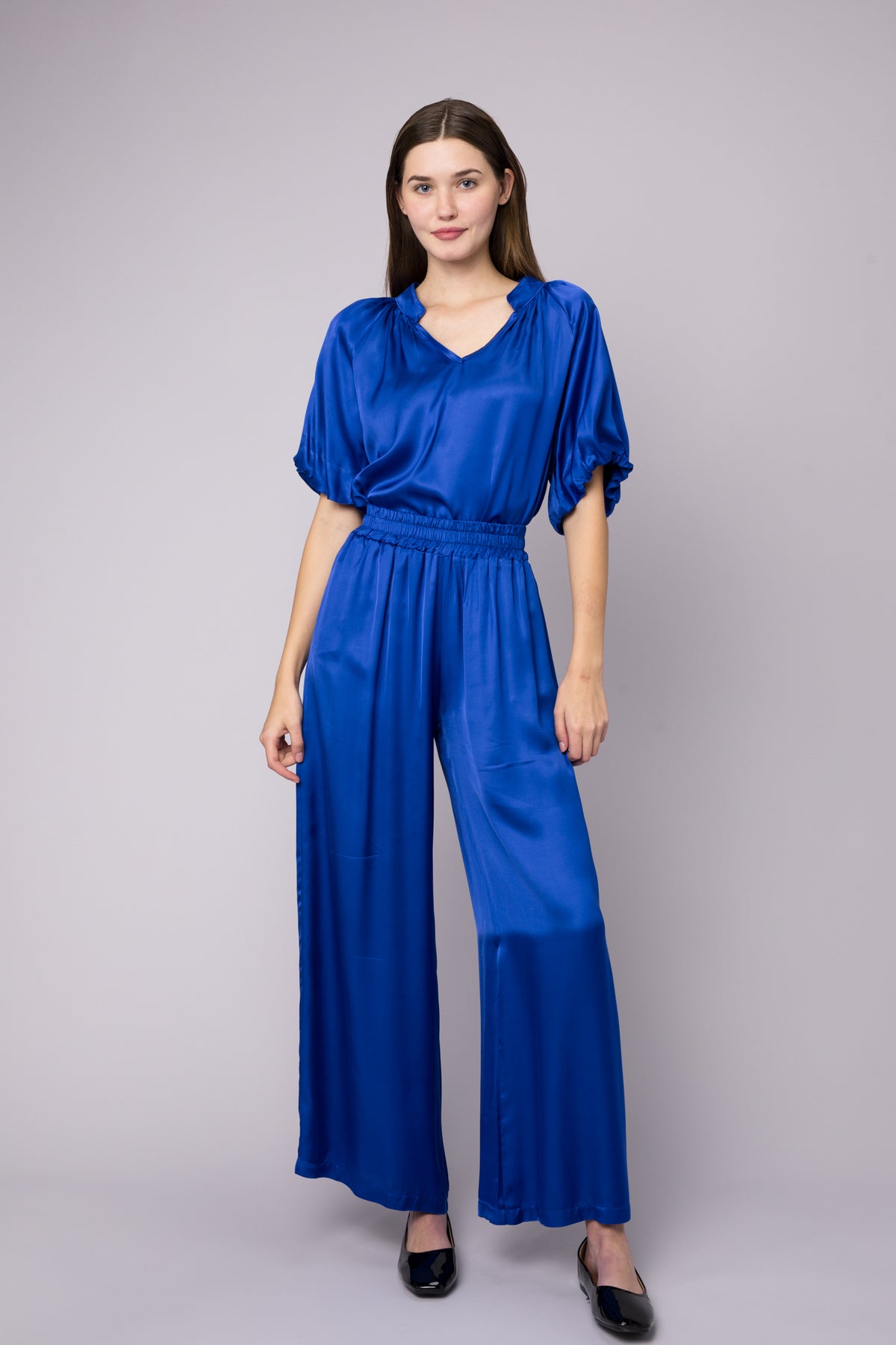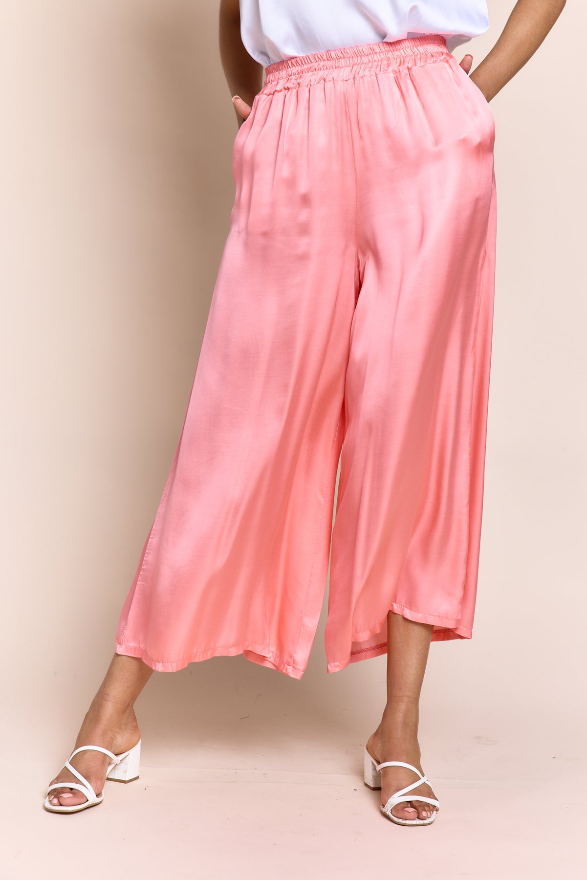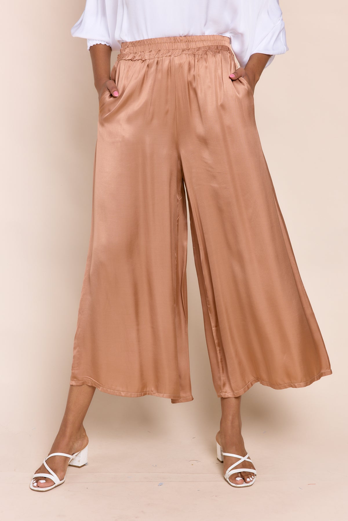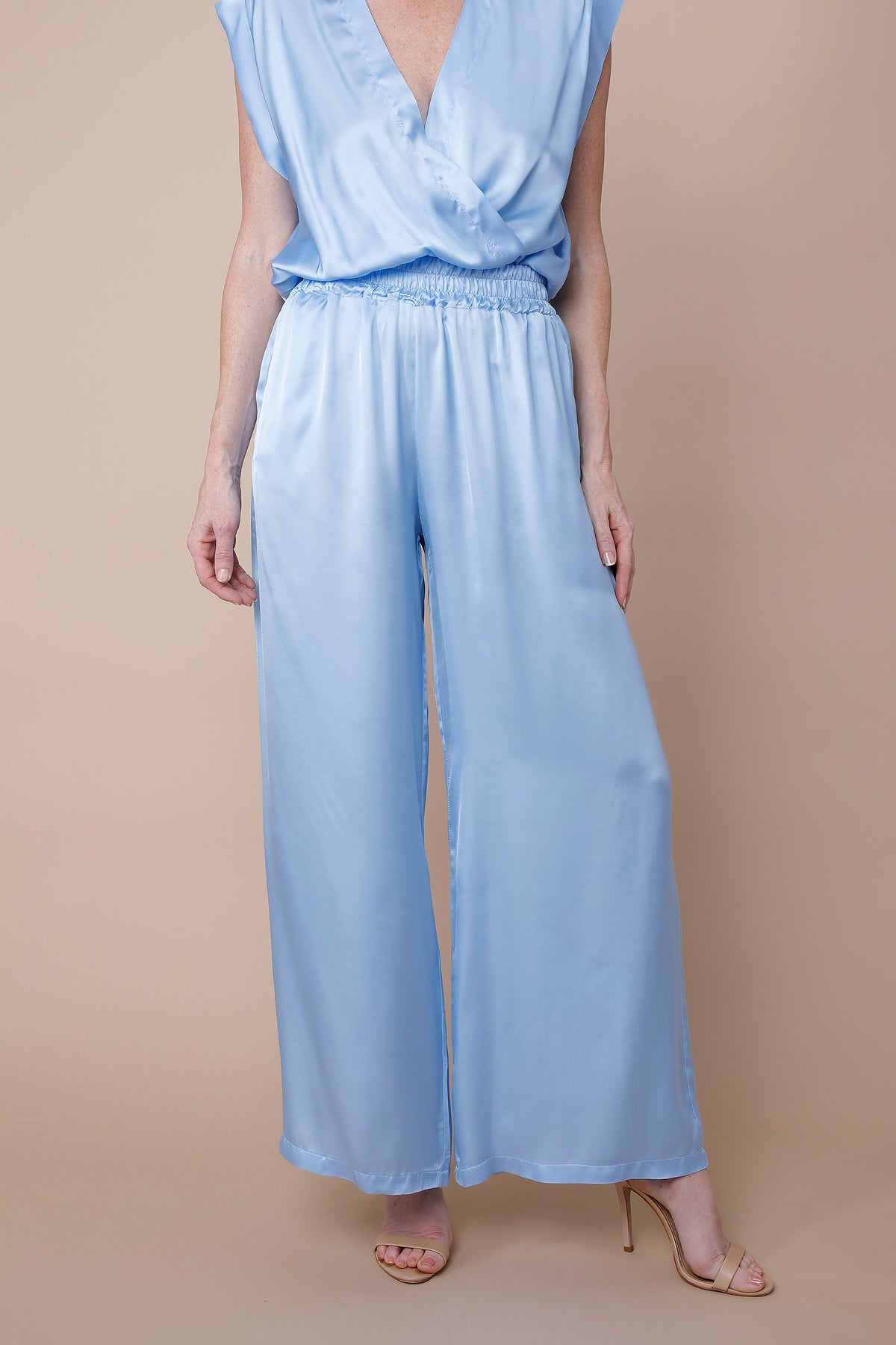 The Amara Pants are the ultimate blend of chic and comfort — designed to elevate your everyday wardrobe. Featuring a flattering elastic high-waisted fit, soft breathable Italian silky satin, and a wide-leg silhouette, these pants move with you from day to night. Whether you're styling them for the office or a weekend brunch, the Amara Pants deliver a polished look with laid-back ease that flatters various. body types