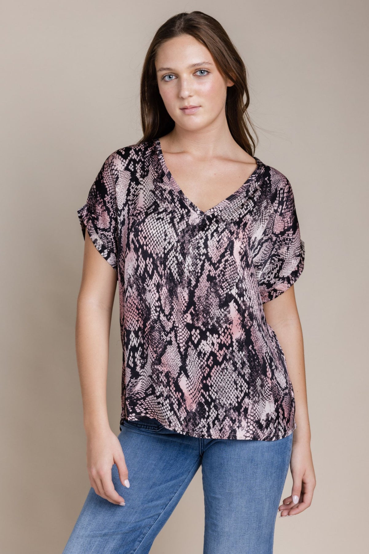 Tessa is your elevated version of your favorite  basic T-shirt , crafted with Italian silky satin, features a V_neckline and short rolled sleeves.Paired Tessa with tailored trousers for the office or dress it down with your favorite jeans for a polish  weekend style.