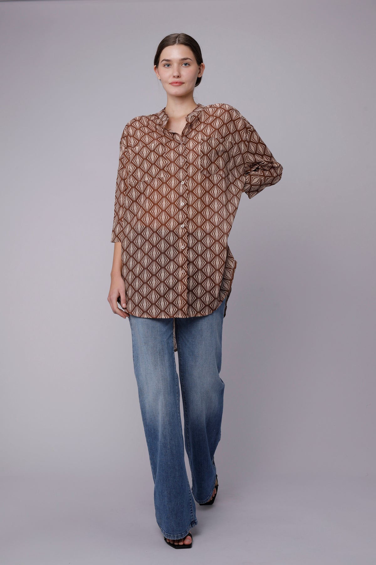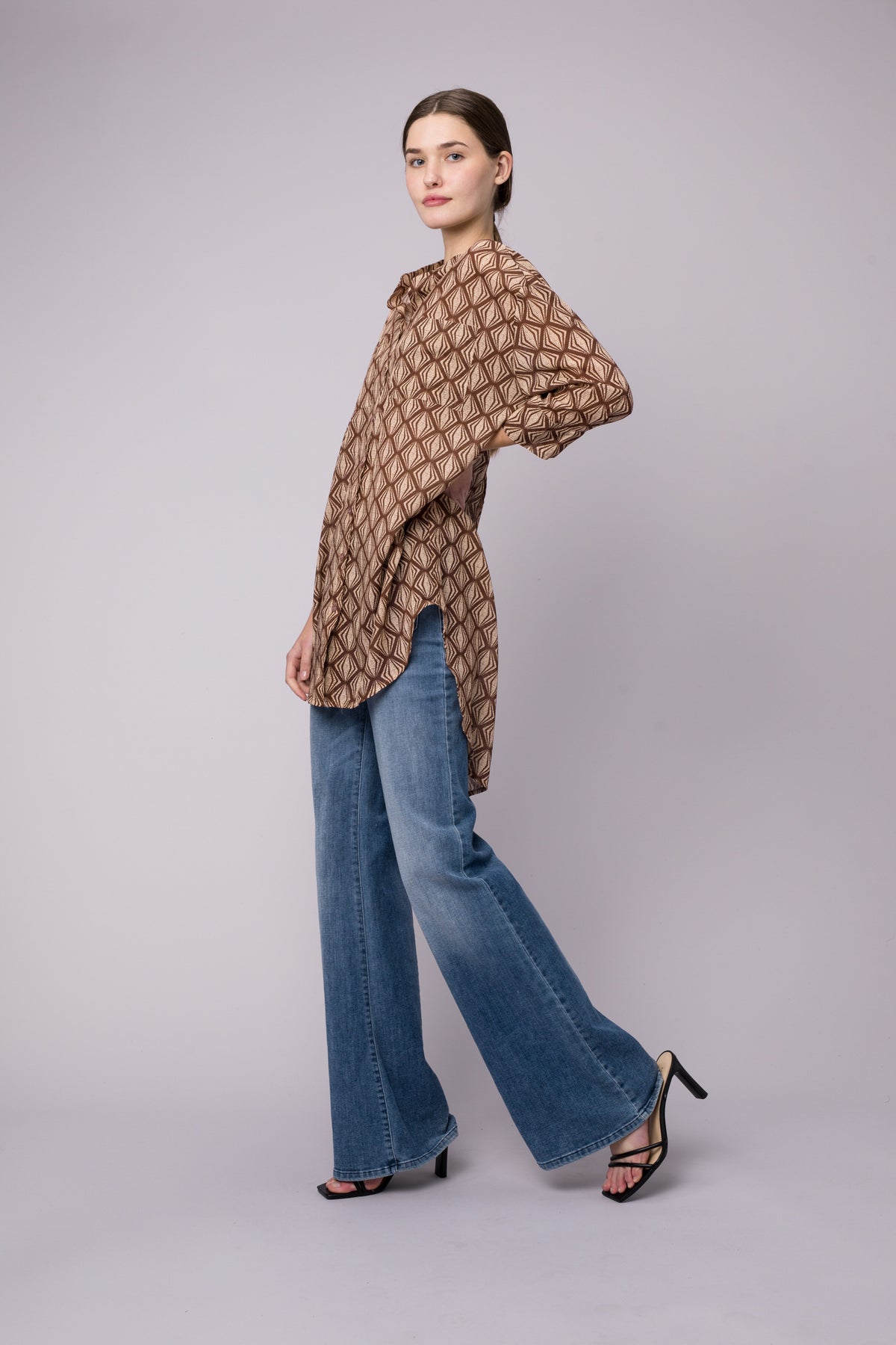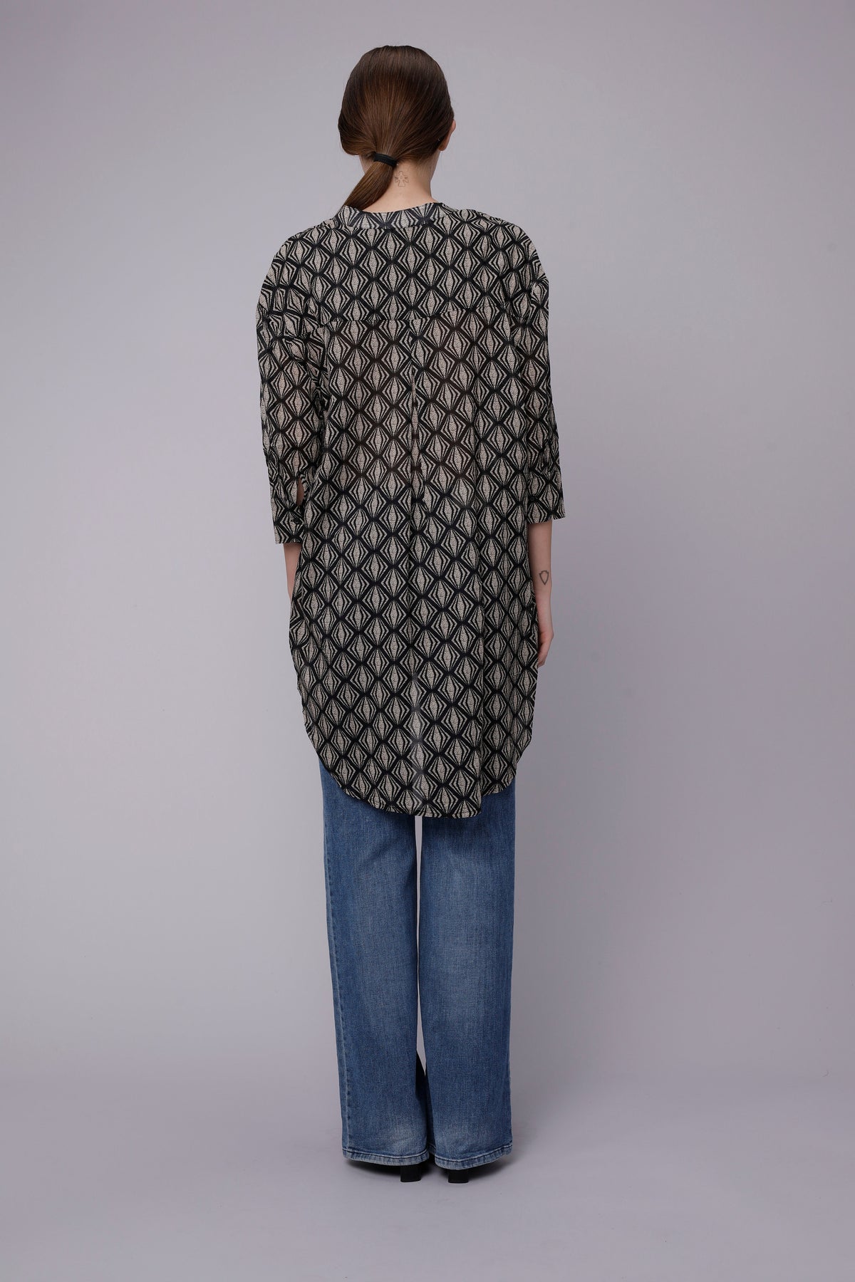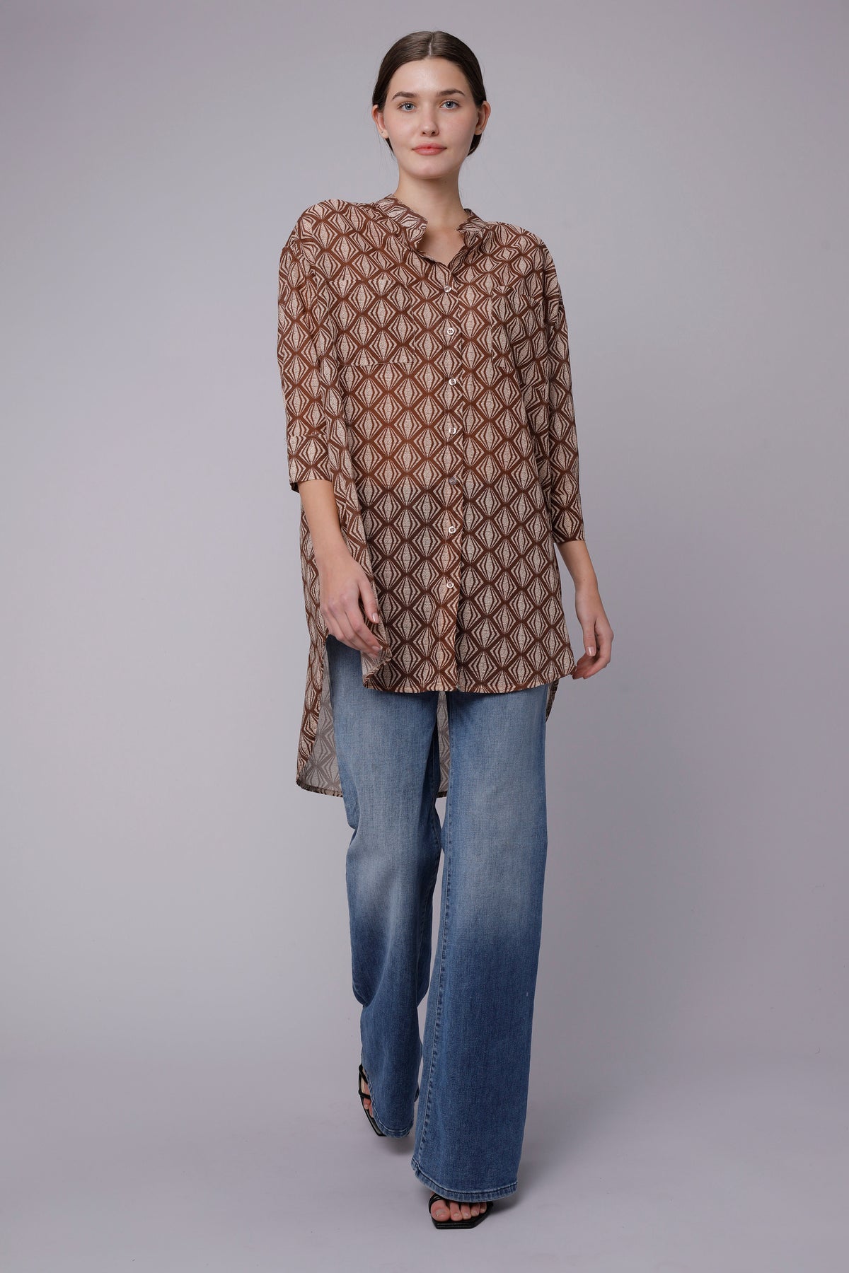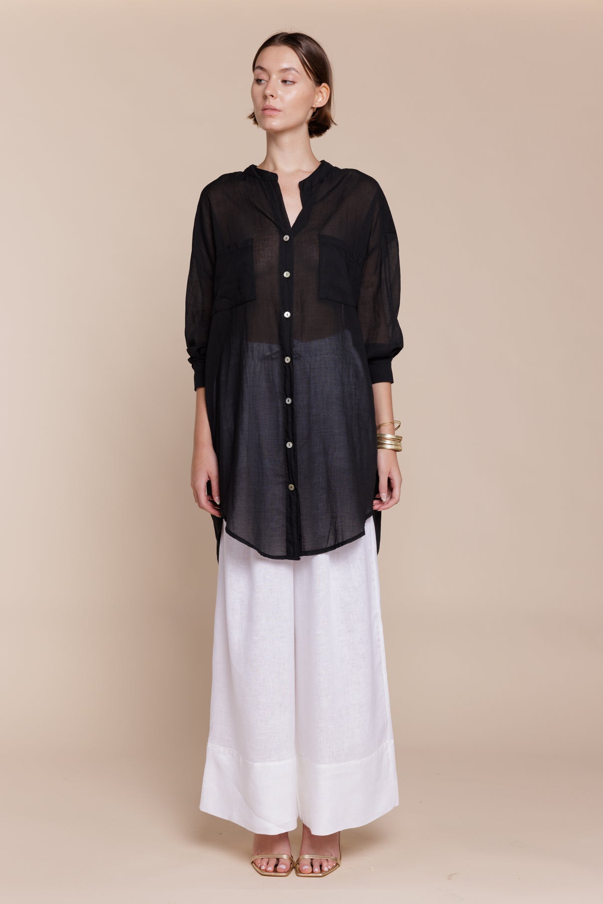 Effortless and elegant, the Adan Tunic Top by Babette is a modern wardrobe essential crafted from airy, luxurious cotton voile. Designed with a relaxed, longline silhouette, it features a band collar, button front, and two chest pockets. Subtle side slits and a rounded hem add gentle movement and a flattering shape. Lightweight and breathable, it’s the perfect top for warm weather dressing—whether worn loose over denim or layered with your favorite pieces.